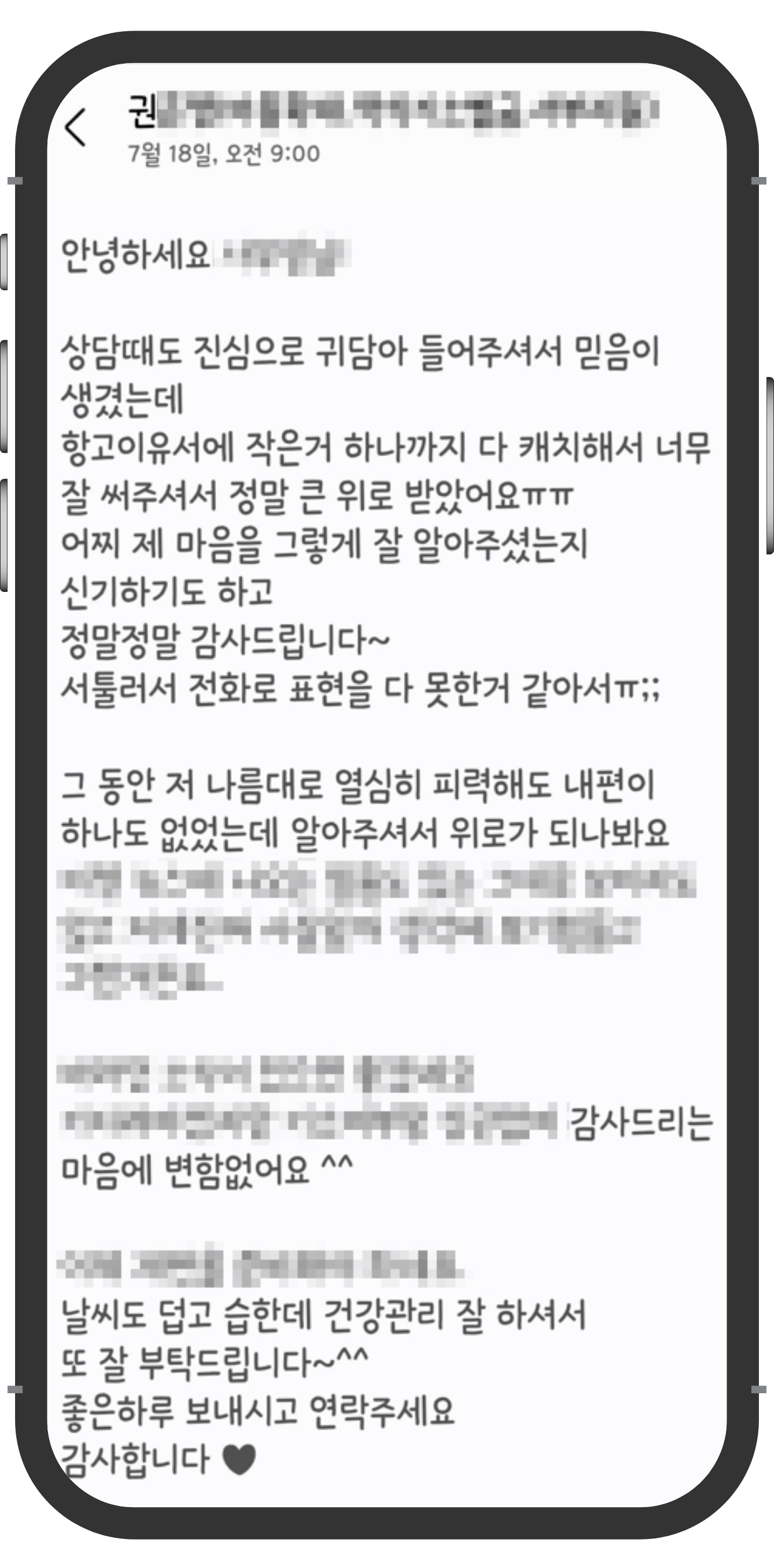 의뢰인께서 체감하신 변화와 만족도를 구체적인 경험담으로 전달드립니다.